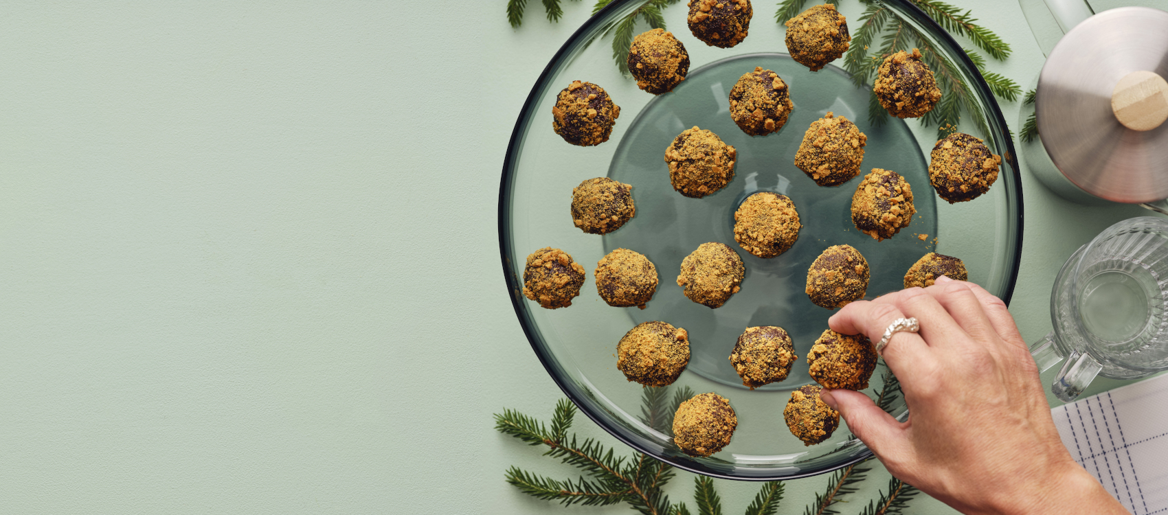 5. Оформете сместа на малки топчета и ги оваляйте в останалите джинджифилови трохи.
