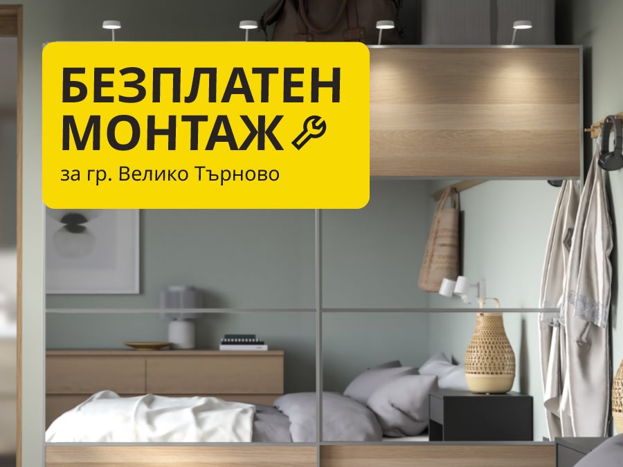 До 30 декември, планирай и купи своят нов гардероб PAX за над 511.29 € / 1000 лв. и получаваш безплатен монтаж в Зона 1 и 2 на Велико Търново!