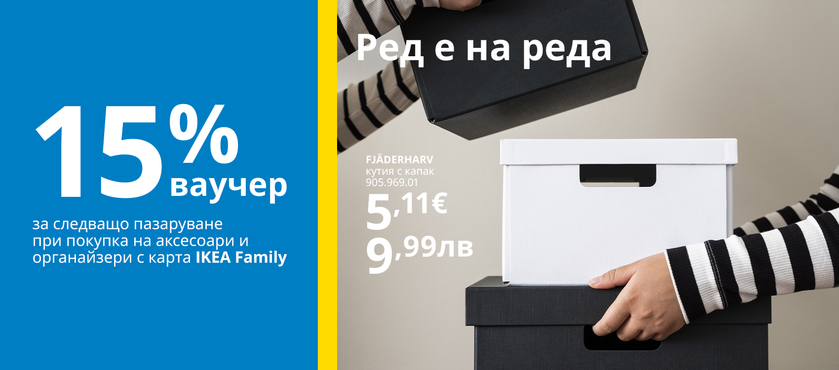 15% ваучер при покупка на аксесоари и органайзери с карта IKEA Family
